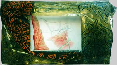 (1)"DEMETER"(1996), 35 x 60 x 15 cm, Buntstiftzeichnung mit Gießharz,