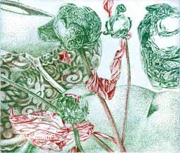 Die Exemplare einer Auflage dieser großformatigen Radierungen variieren farblich (wie beim "Mouseover" sichtbar wird). - Dadurch werden sie zu "Unikaten". - Falls Bildwerke außerdem "multimedial" bearbeitet wurden, führt ein "KLICK" auf die Abbildung zur gewünschten Seite