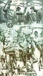 (1) "CIVILISATION SINCE 1492", '92,, 60x50cm (siehe dazu auch: das 8-teilige gleichnamige Leinwandbild unter: "GROSSFORMATE II"; (2) "STRASSENBAHN", '70, 60x50cm (siehe dazu auch: "SIEBDRUCKE").